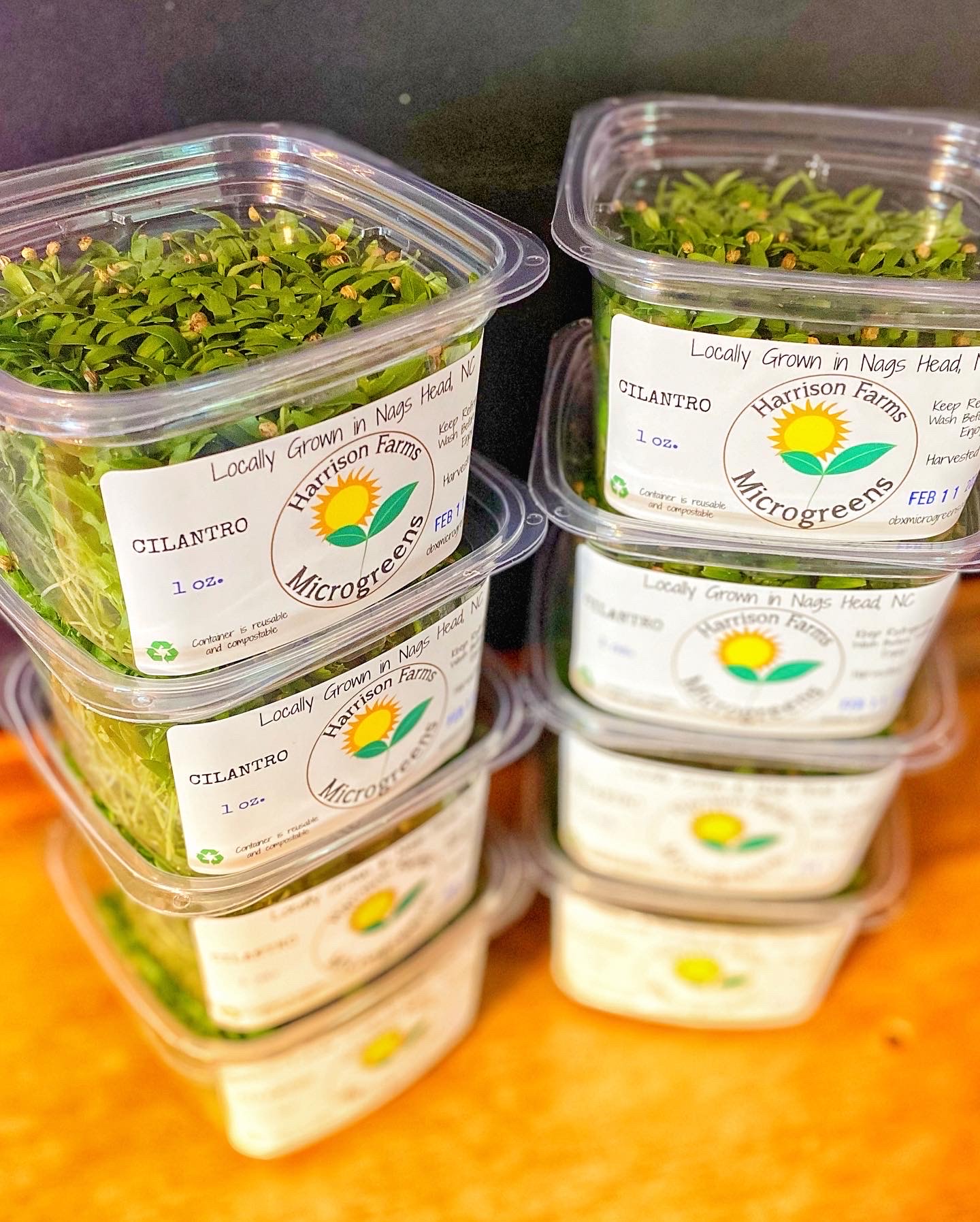 Harrison Farms Microgreens are available at Secotan Market (Wanchese) and Dowdy Farm Market (Nags Head). There are ordering and subscription services on the website (obxmicrogreens) with home delivery service. They’re also available for pre-order and pick-up at Shine On Juicery in Kill Devil Hills.
